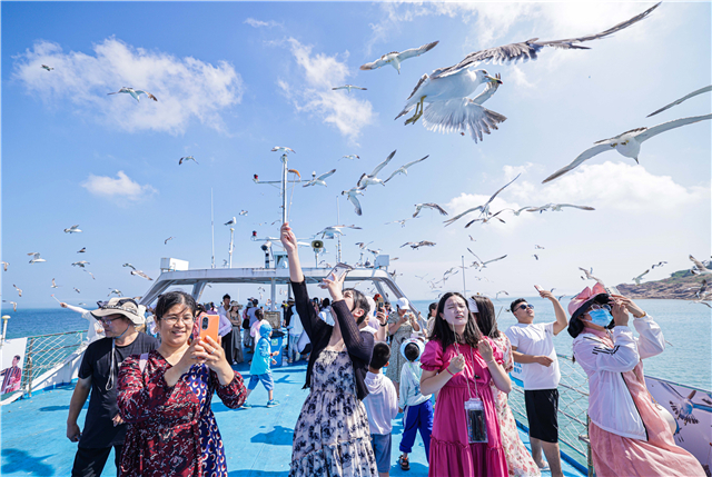 “以前都是自駕游威海,這次在海上看威海,感受完全不同,太美了。”5月1日,威海—小石島(貓頭山)精品航線正式開通,搭乘該航線海上游覽威海的游客李女士感嘆道。
