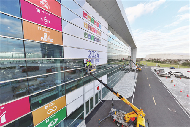 10月20日,在威海國(guó)際經(jīng)貿(mào)交流中心,工作人員正在加緊進(jìn)行2024年世界城市日中國(guó)主場(chǎng)活動(dòng)主題展場(chǎng)館展臺(tái)施工,同時(shí)展館外的2024年世界城市日中國(guó)主場(chǎng)招貼畫正在張貼中。10月26日至28日,2024年世界城市日中國(guó)主場(chǎng)活動(dòng)主題展覽將在威海國(guó)際經(jīng)貿(mào)交流中心E5展館、E2展館舉行。目前,各項(xiàng)準(zhǔn)備工作正有序進(jìn)行,展覽展臺(tái)搭建工作預(yù)計(jì)10月23日全部完成。